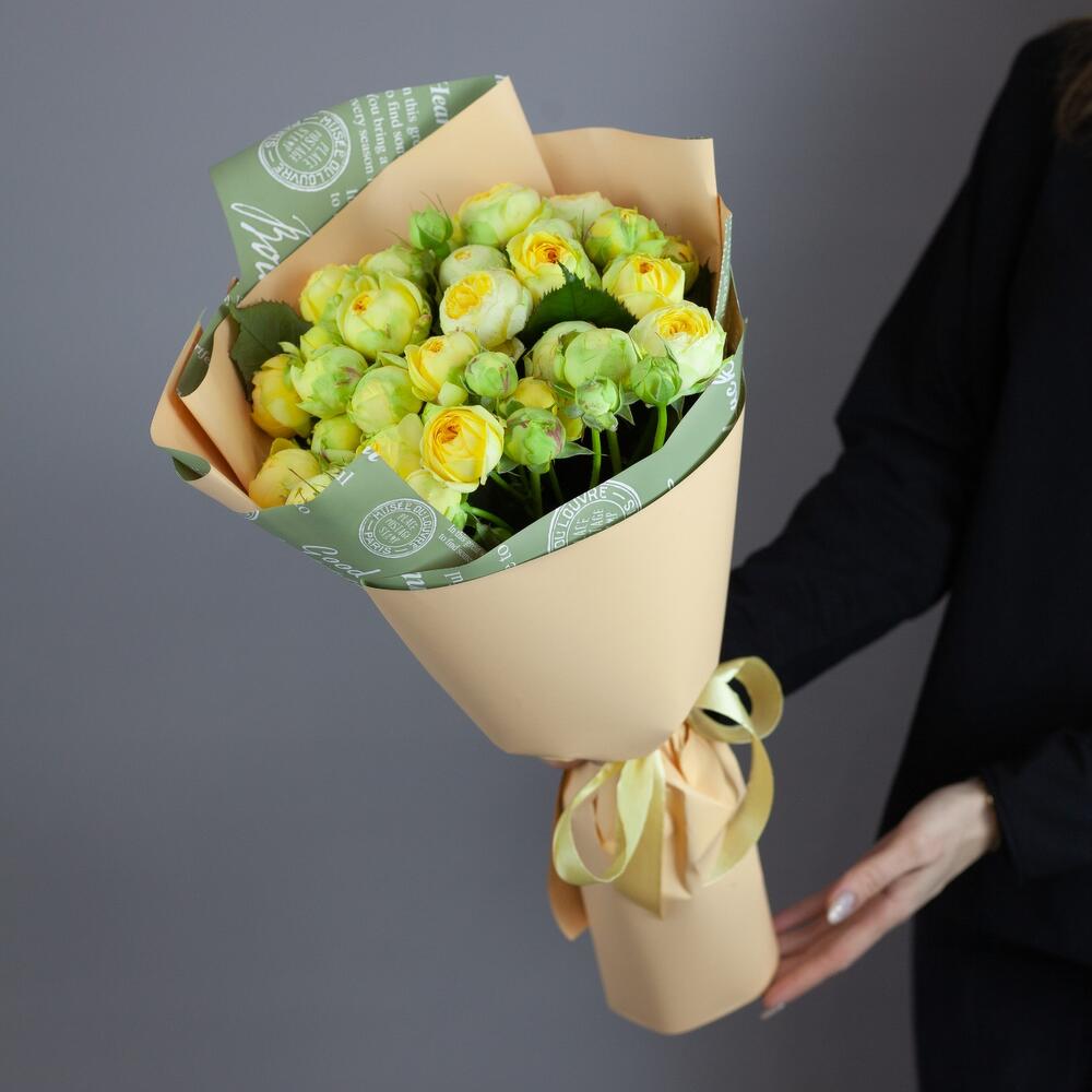 11 кустовых пионовидных роз в дизайнерской упаковке