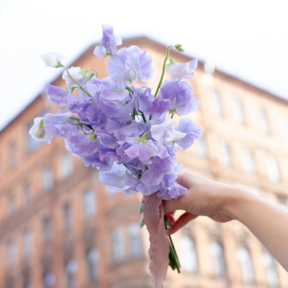 Латирус сиреневый – 15 шт.ваза крафтовая – 1 шт.сумка -переноска – 1 шт.