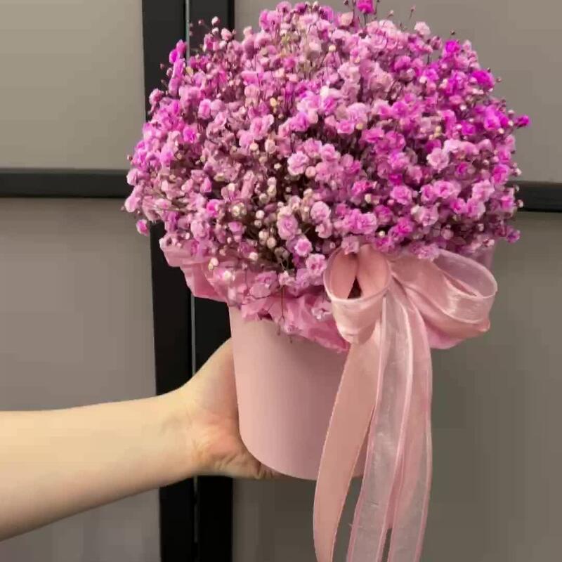 Гипсофила – 5 шт.Коробка шляпная – 1 шт.Оазис флористический – 1 шт.Лента атласная – 2 шт.