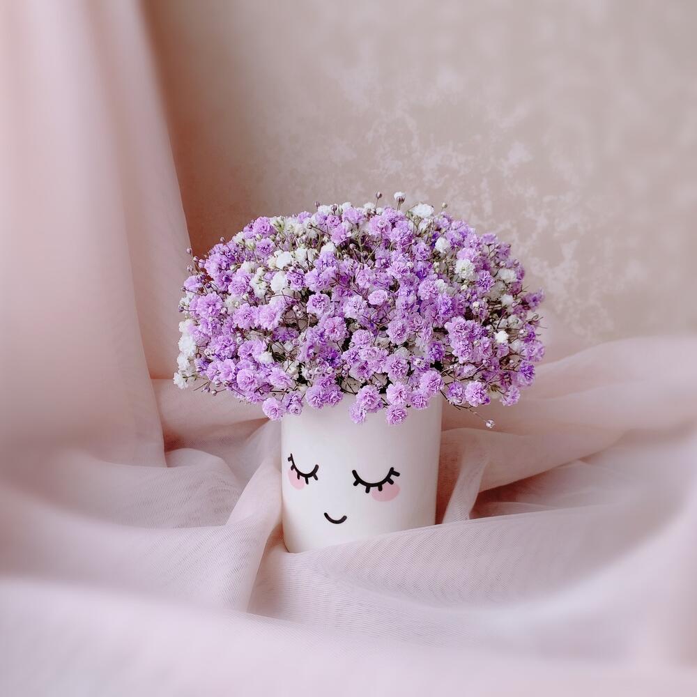 Фиолетовая гипсофила в керамическом кашпо