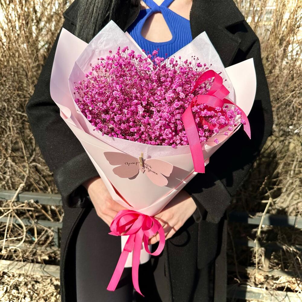 Розовый букет из гипсофилы «Принцесса»