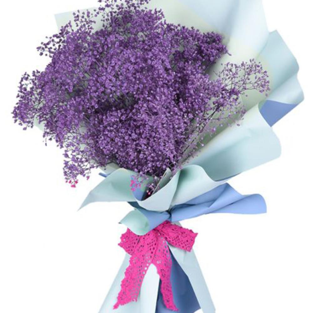 «Лавандовое созвездие» Букет из розы, гвоздики, статица и хлопка