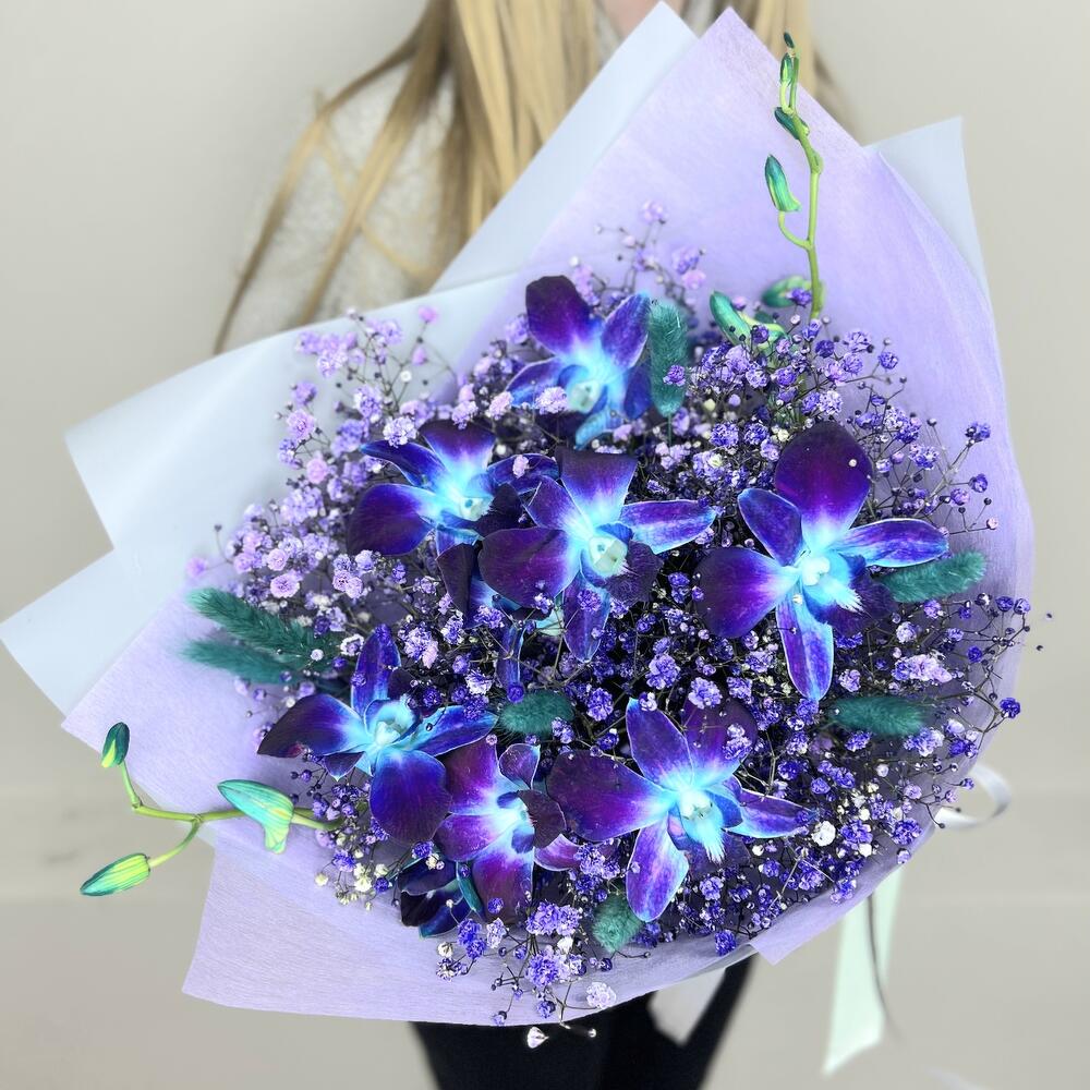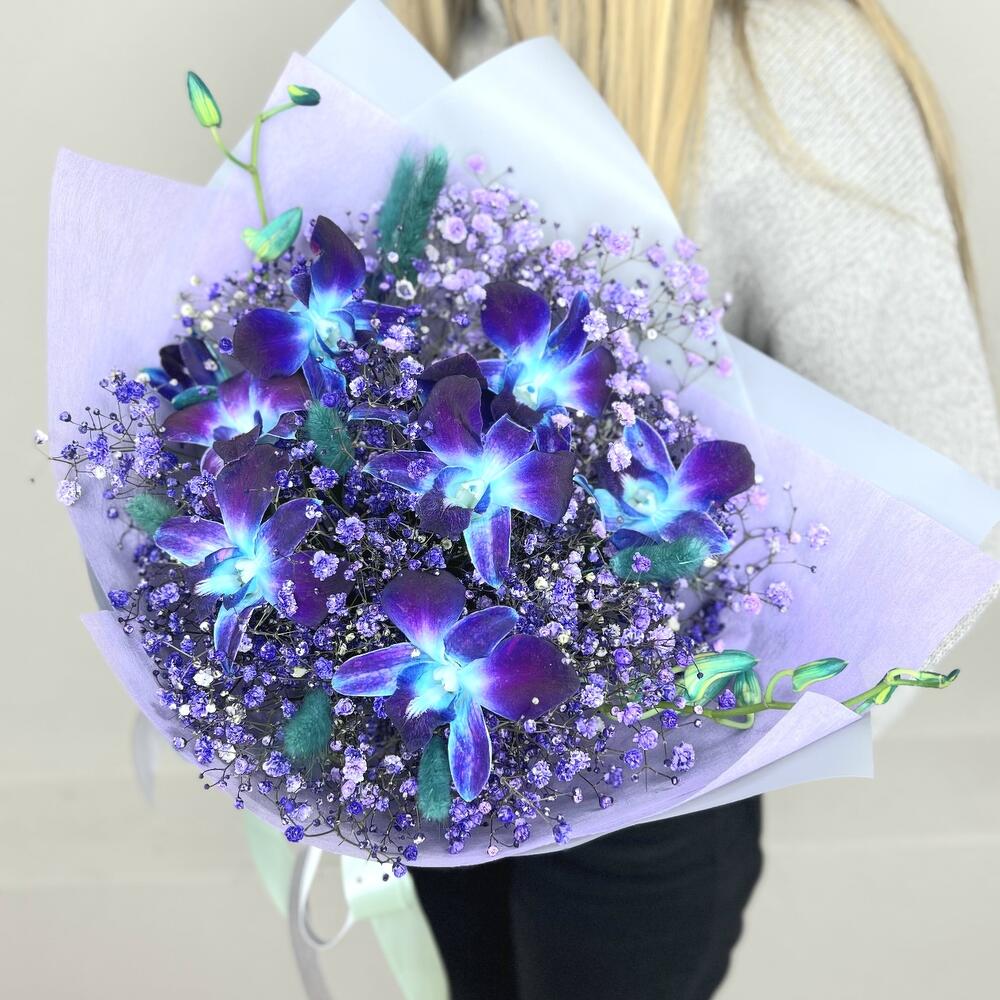 Ты мой космос ⭐ букет из экзотичных орхидей с гипсофилой