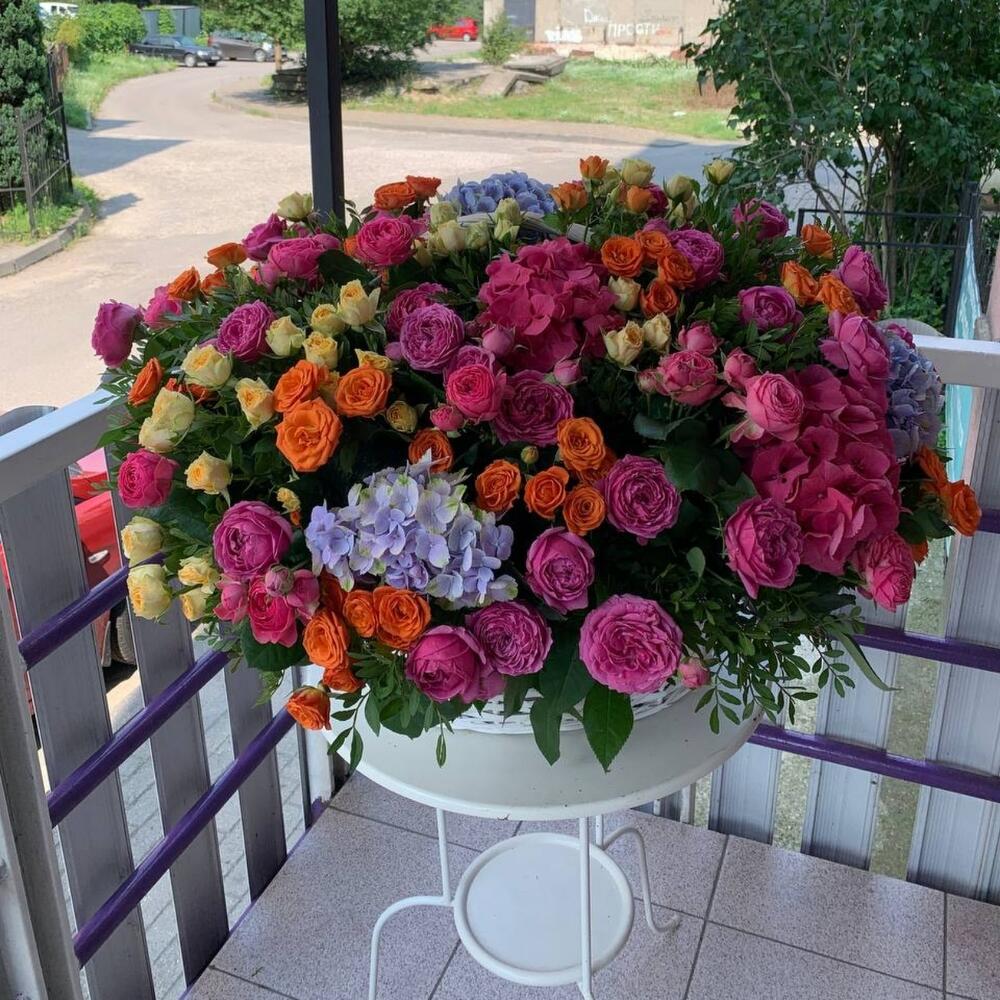 Метки: от 5000 руб, цветы в корзине