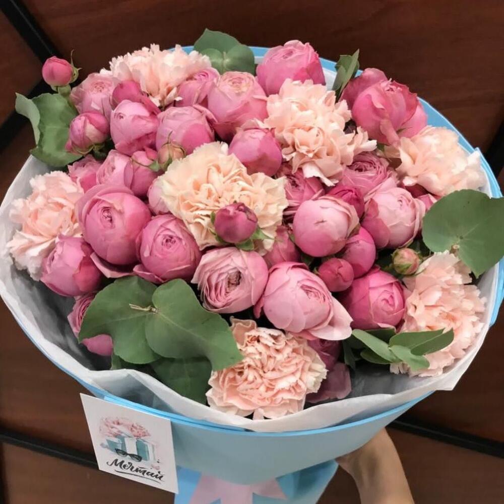 Гвоздики, Пионовидные розы, Розы