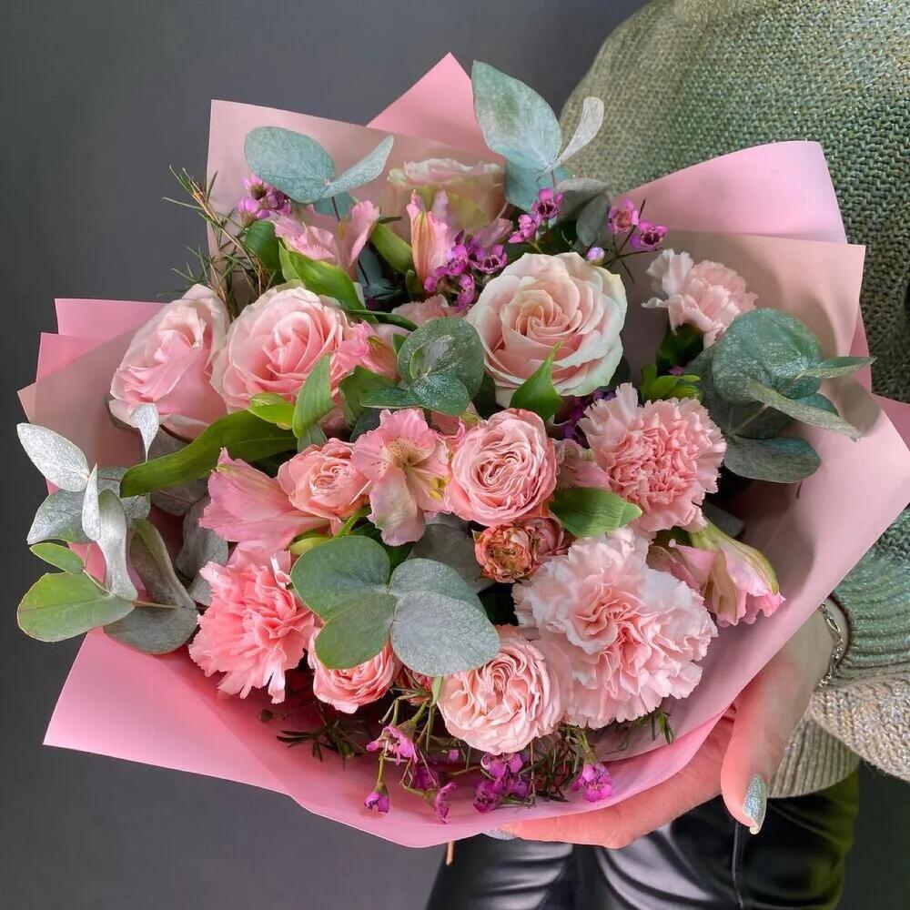 Гвоздики, Кустовые розы, Пионовидные розы, Розы