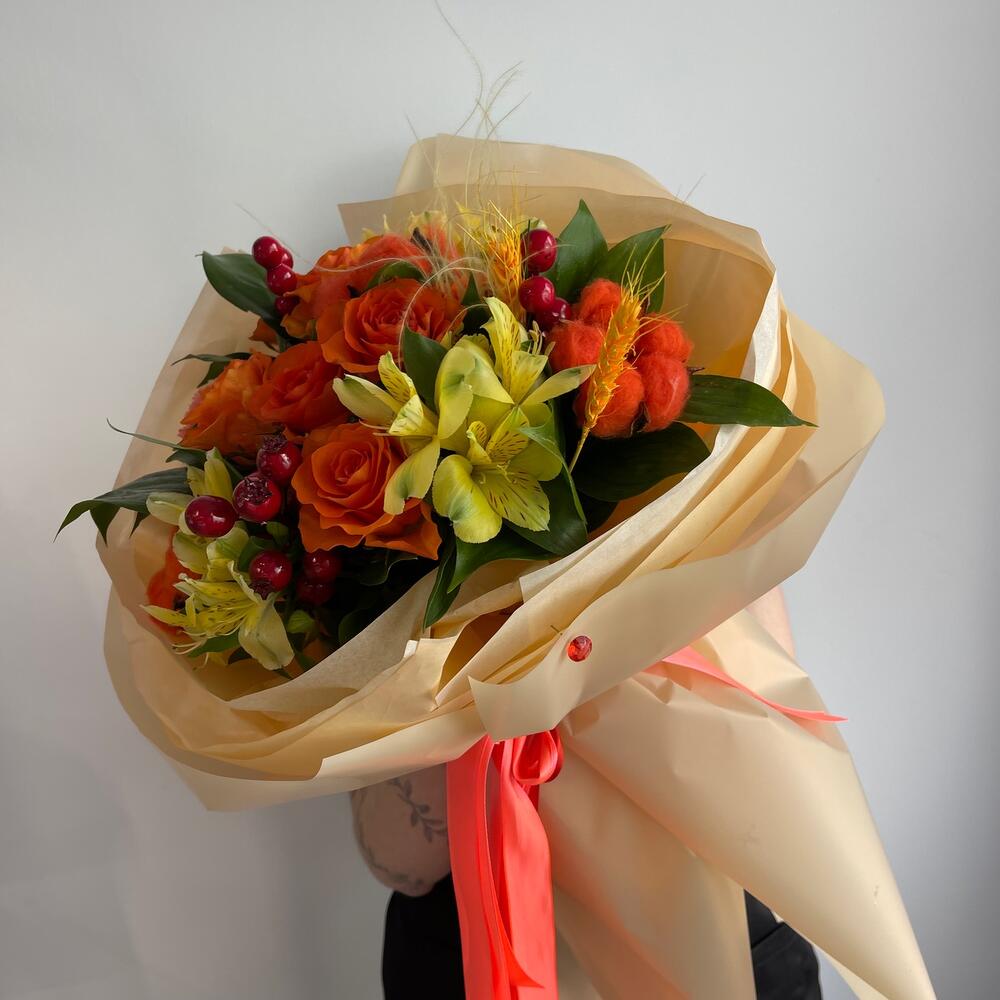 Рыжий букет с розами