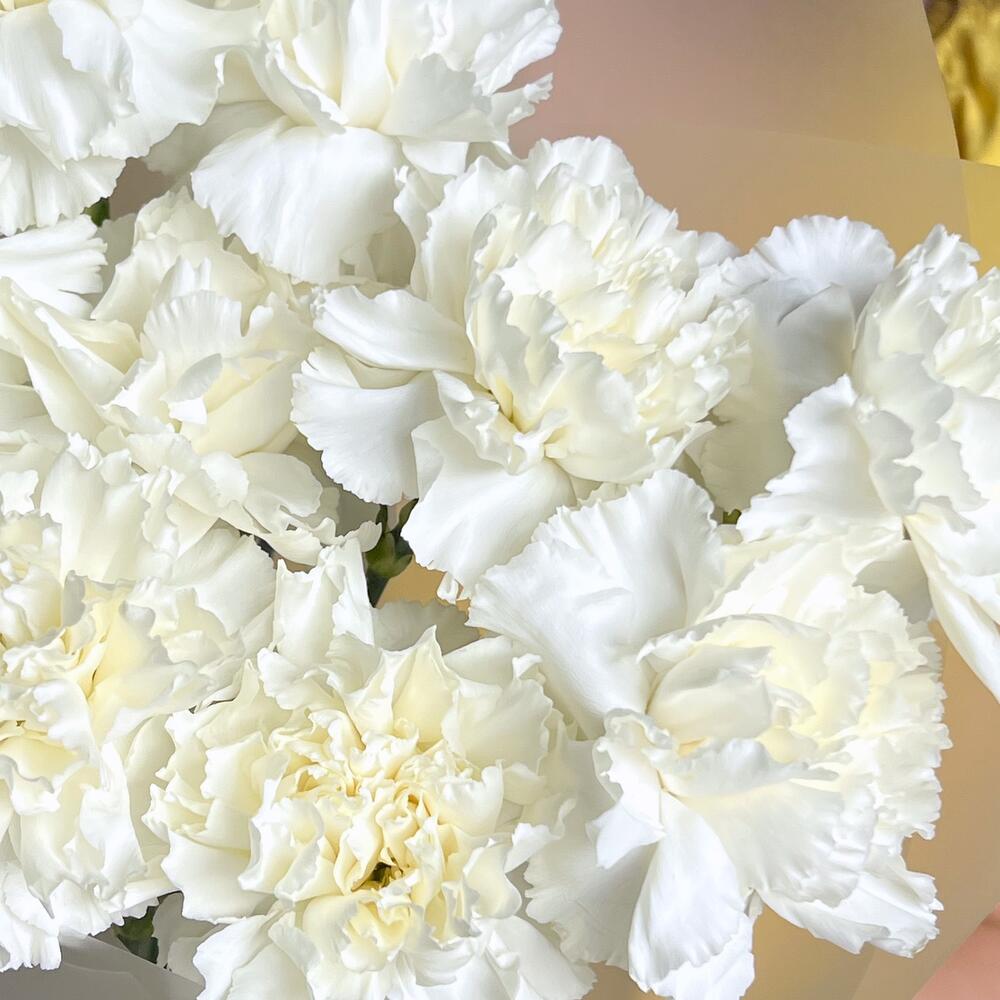 гвоздика white – 9 шт.Дизайнерская упаковка – 1 шт.Лента – 1 шт.