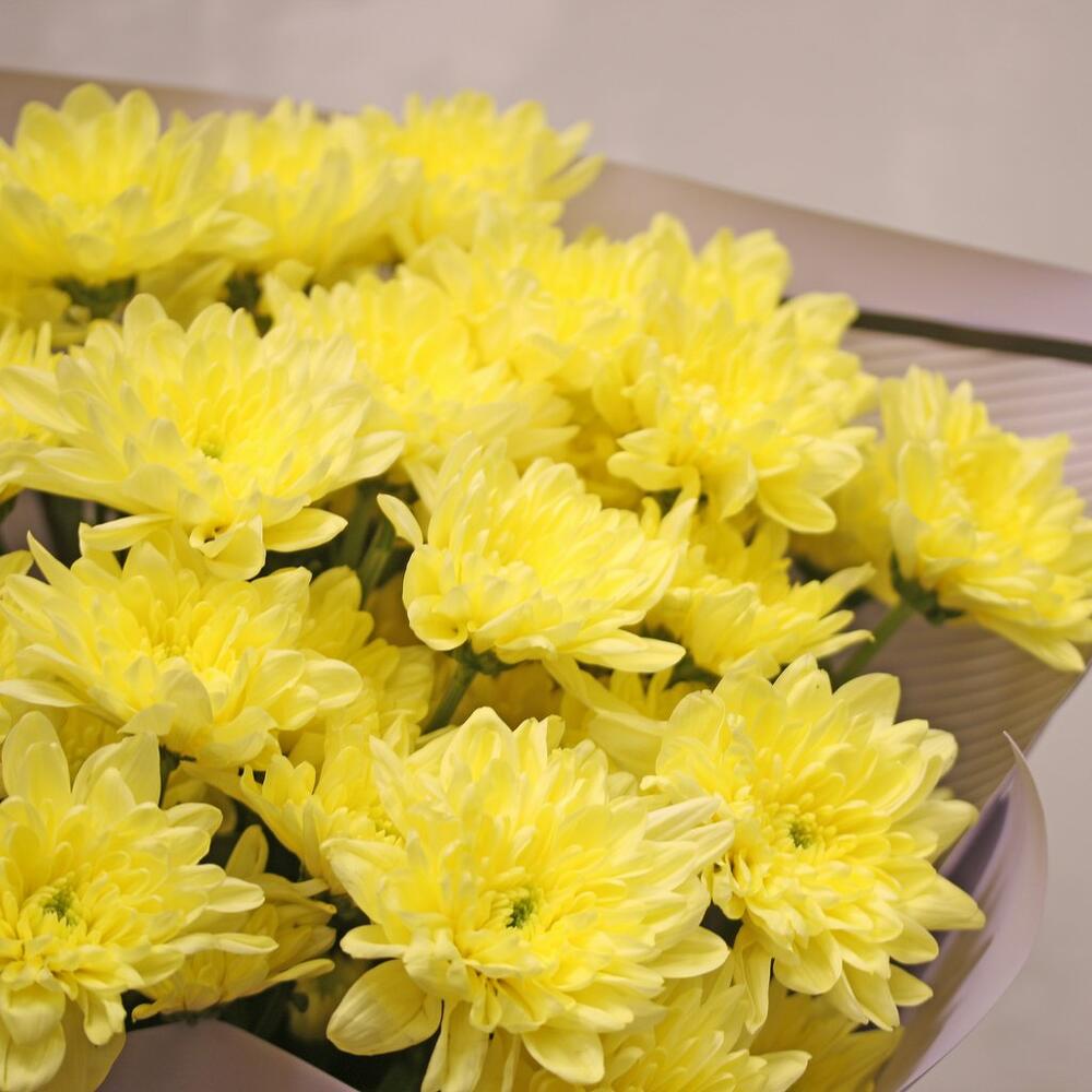 Букет из 9 желтых кустовых хризантем в стильной упаковке