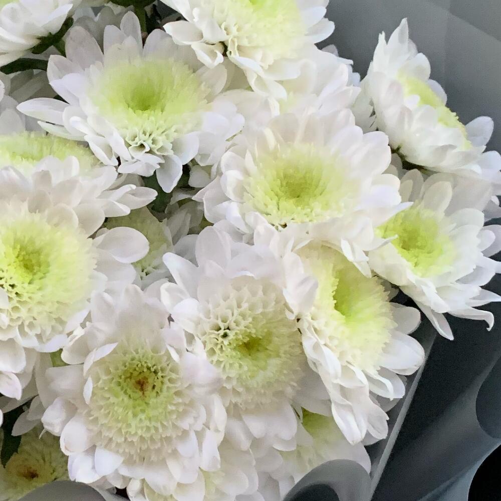 Хризантема кустовая – 5 шт.Упаковка – 2 шт.Лента – 2 шт.