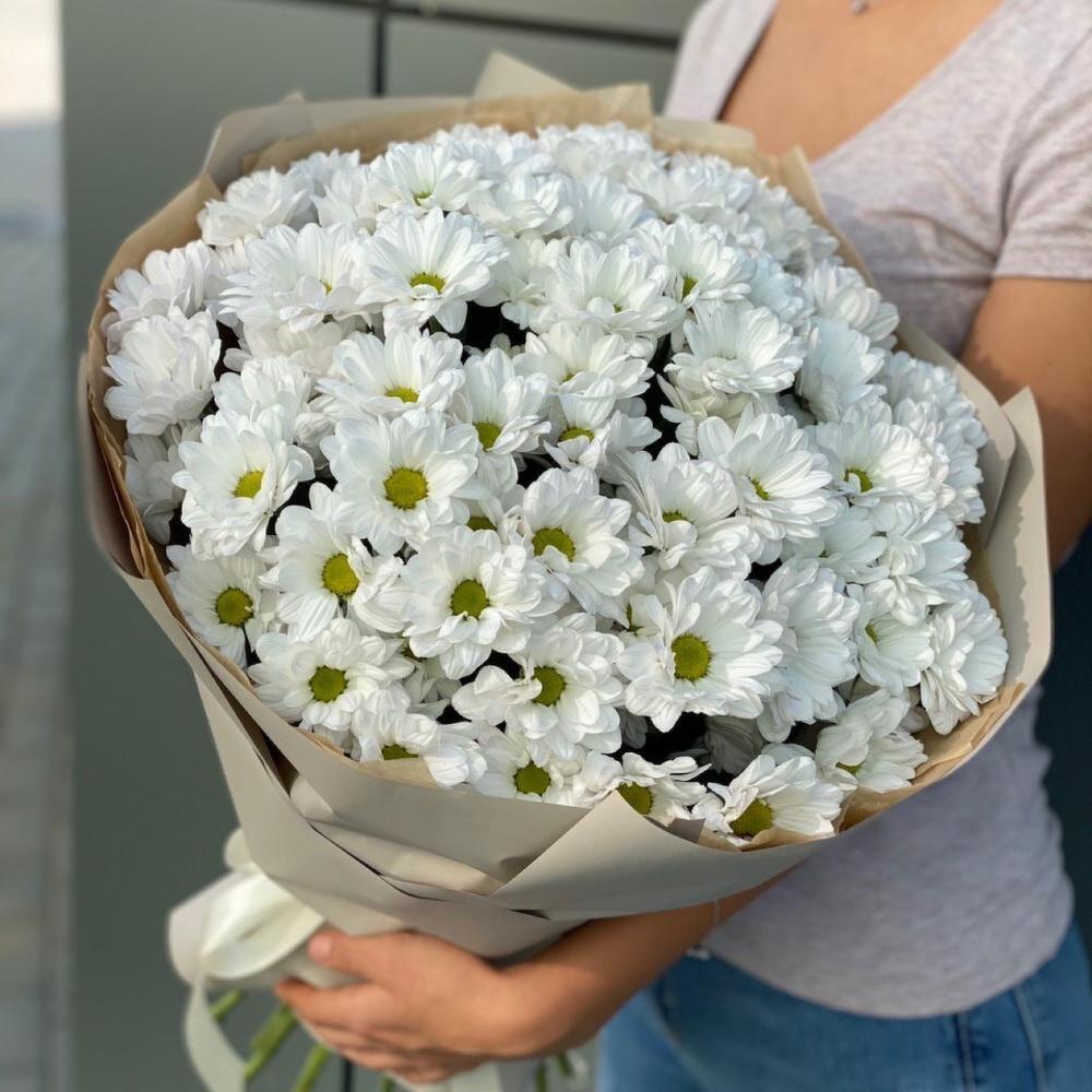 Хризантема кустовая – 13 шт. Упаковка дизайнерская – 1 шт. Открыточка с вашими пожеланиями – 1 шт.