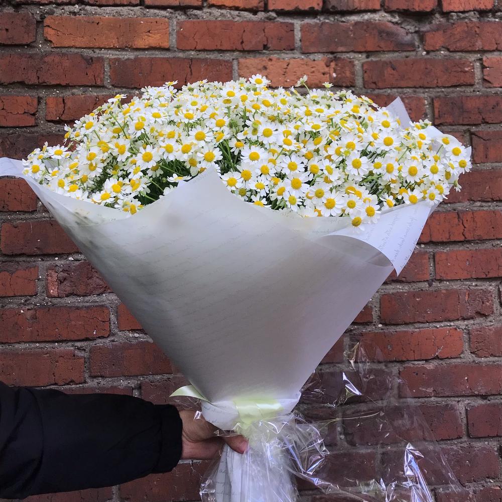 Матрикария (Ромашка Камила) – 25 шт.бумага дизайнерская – 1 шт.Лента атласная – 1 шт.