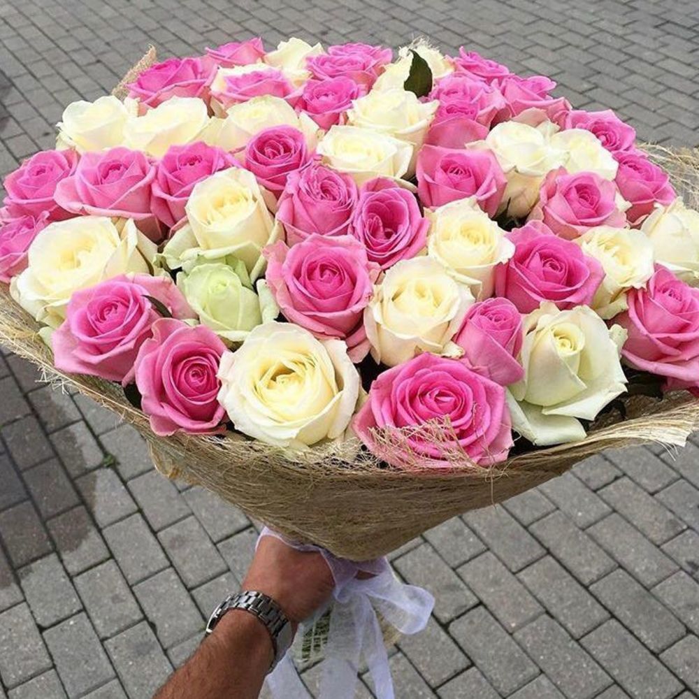 Лента – 1 шт. Роза местная – 51 шт. Крафт – 1 шт.