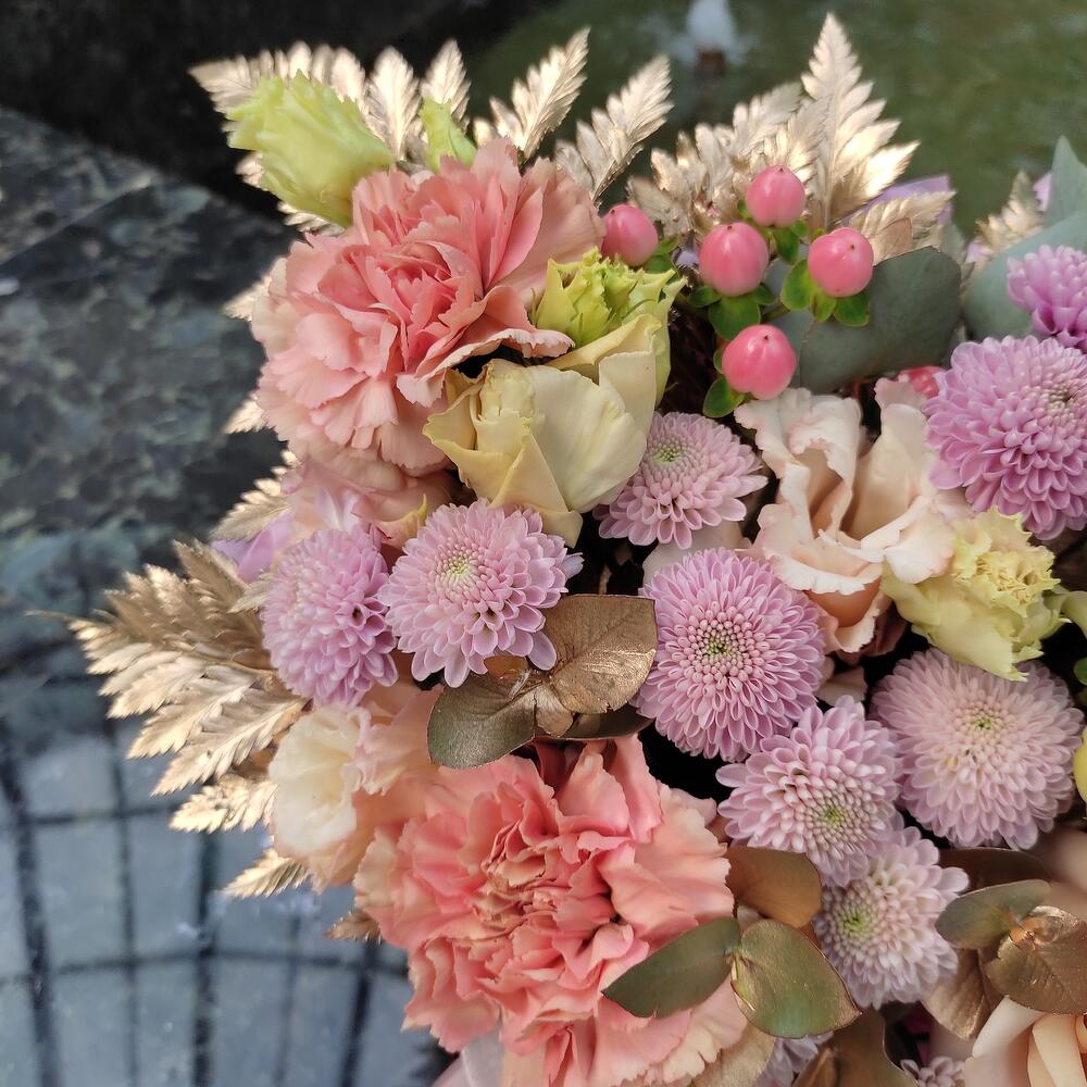 Категории: Гвоздики, Кустовые розы, Розы, Хризантемы