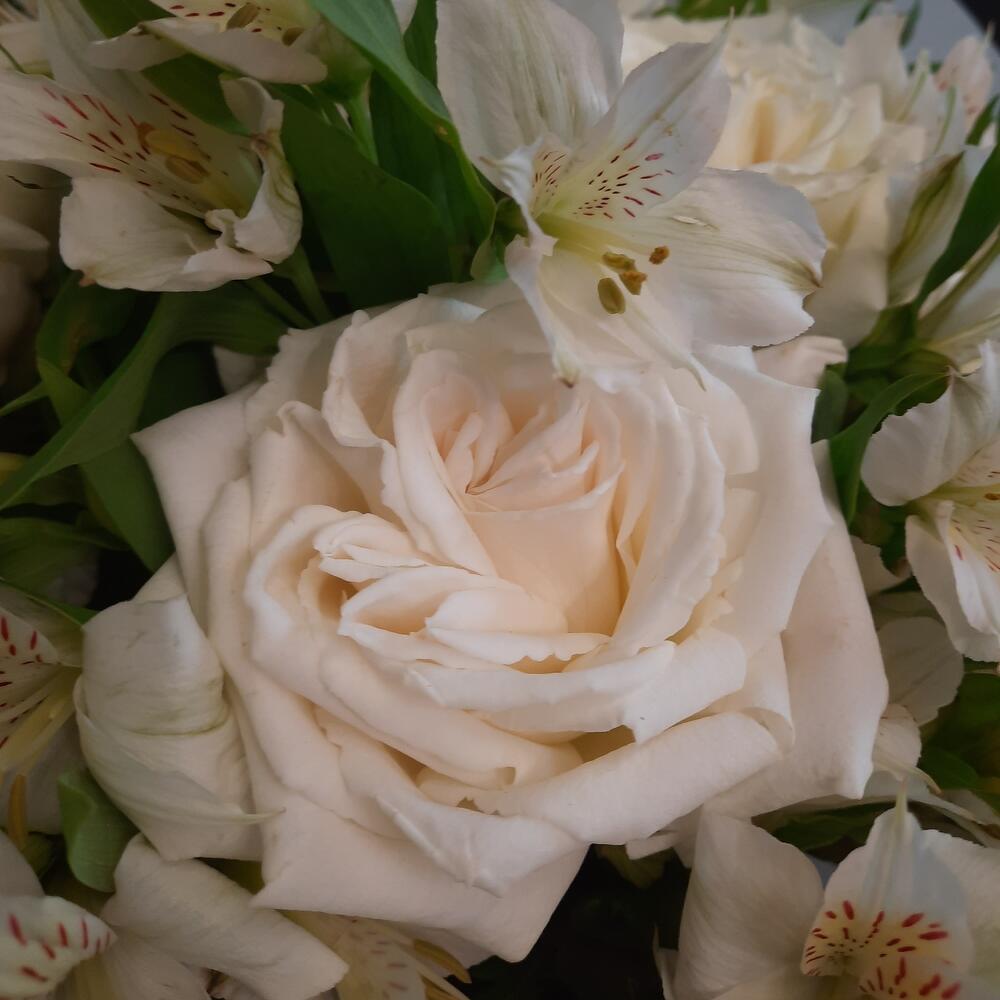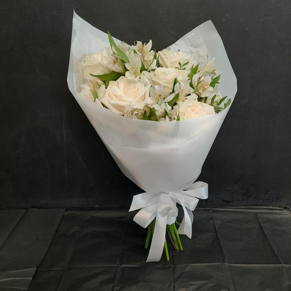 Белые розы с альстромерией