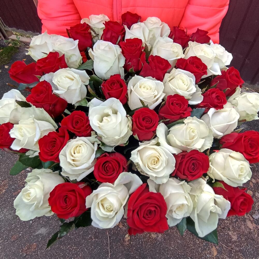 Букет 51шт красно-белый микс