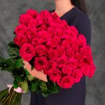Букет 55 розовых роз.