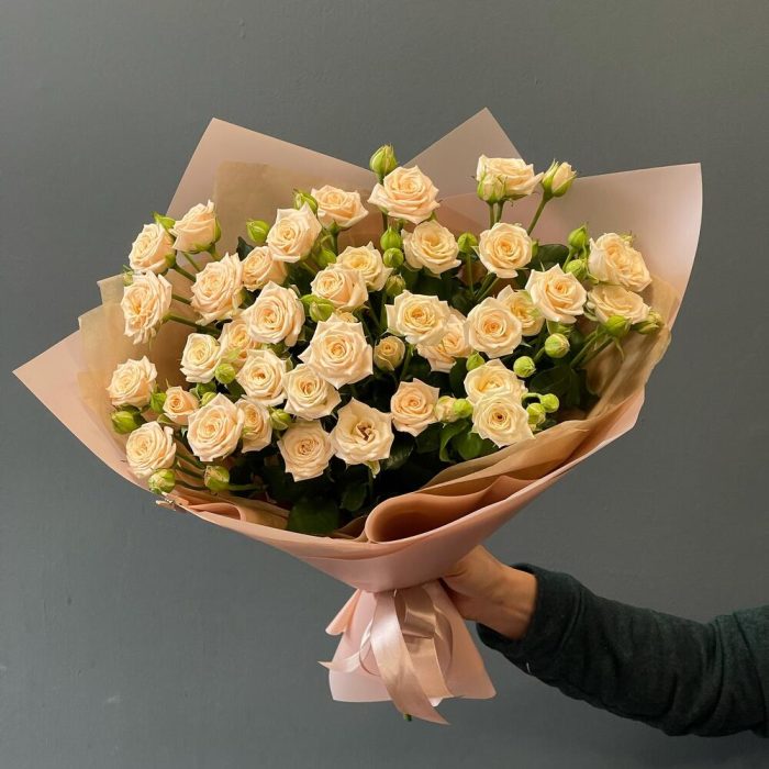 Лента – 1 шт.Роза кустовая – 9 шт.Упаковка – 1 шт.