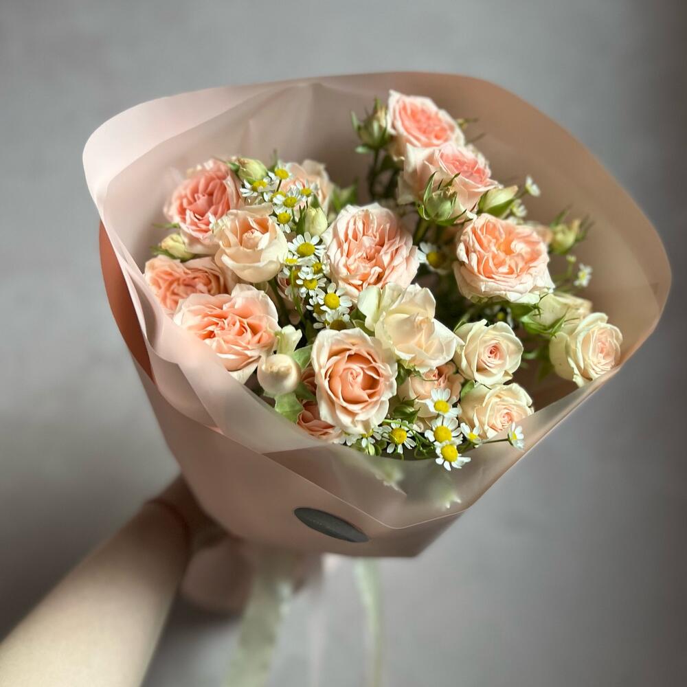 Букет из кустовой розы и ромашки