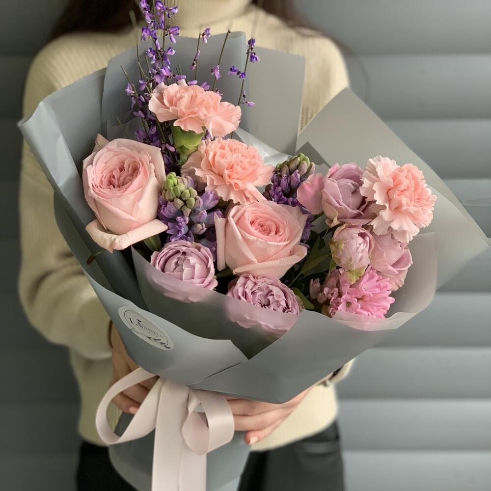 Гвоздики, Кустовые розы, Пионовидные розы, Розы