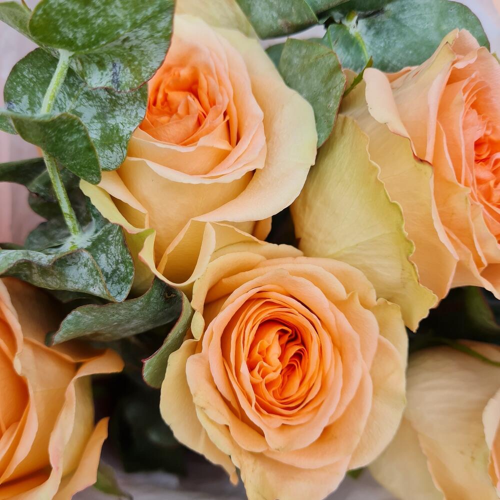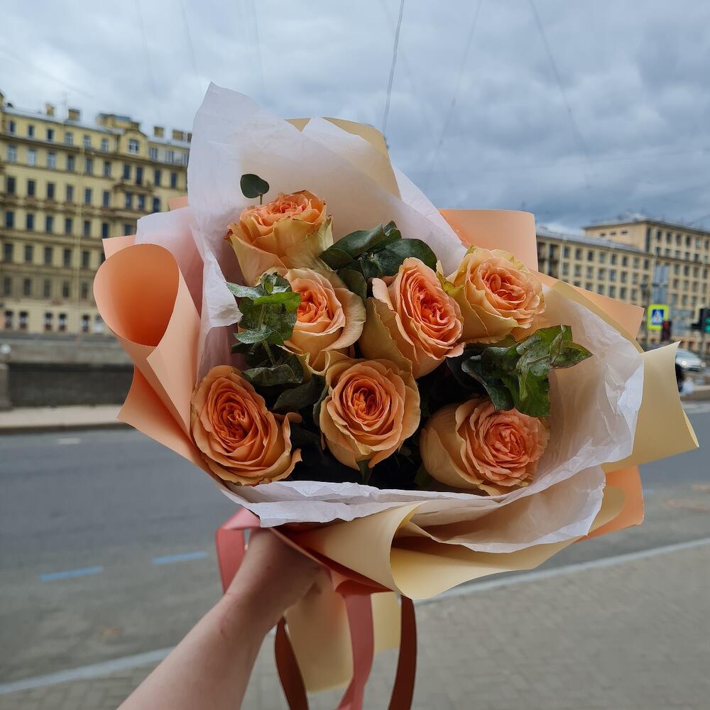 Роза пионовидная – 7 шт.Эвкалипт Baby Blue – 3 шт.