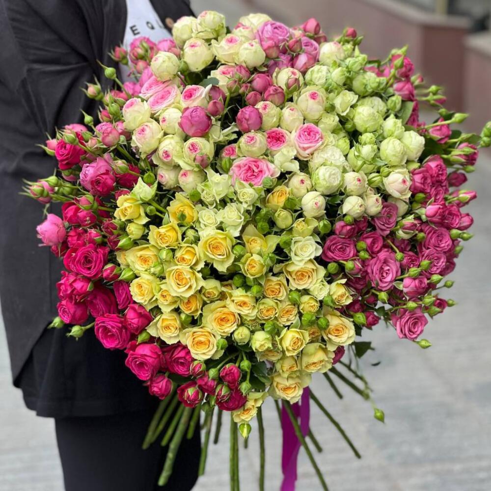 Гвоздики, Кустовые розы, Пионовидные розы, Розы