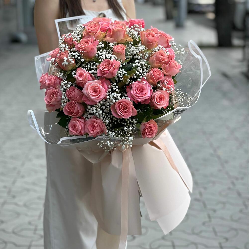 Купил цветы для своей девушки на День Святого Валентина. Она была очень рада и сказала, что таких красивых цветов у нее еще не было. Спасибо за вашу работу!