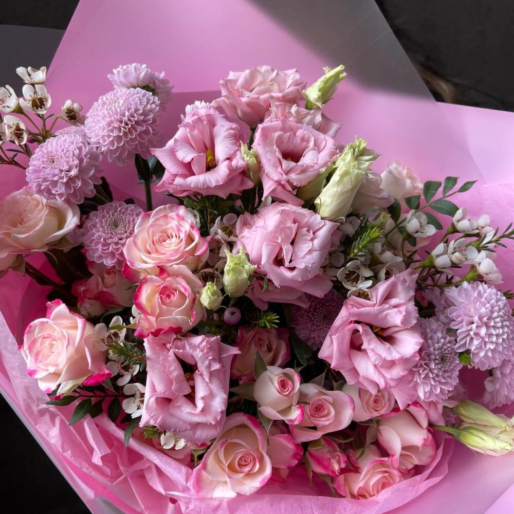 Категории: Кустовые розы, Лизиантусы, Розы, Хризантемы