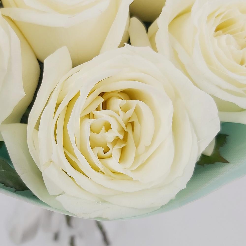 Милый букет из нежнейших белых роз в стильной упаковке. Такой букет всегда уместен и подойдёт для любого повода: День Рождения, именины, годовщина свадьбы, рождение ребенка, 8 марта, День Святого Валентина, выпускной и т.д. Можно вручить маме, сестре, подруге, коллеге, любимой.