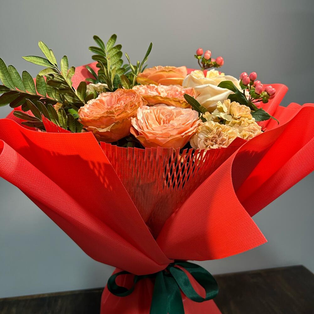 Гвоздики, Кустовые розы, Пионовидные розы, Розы