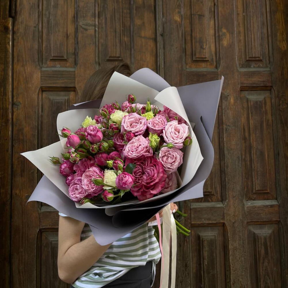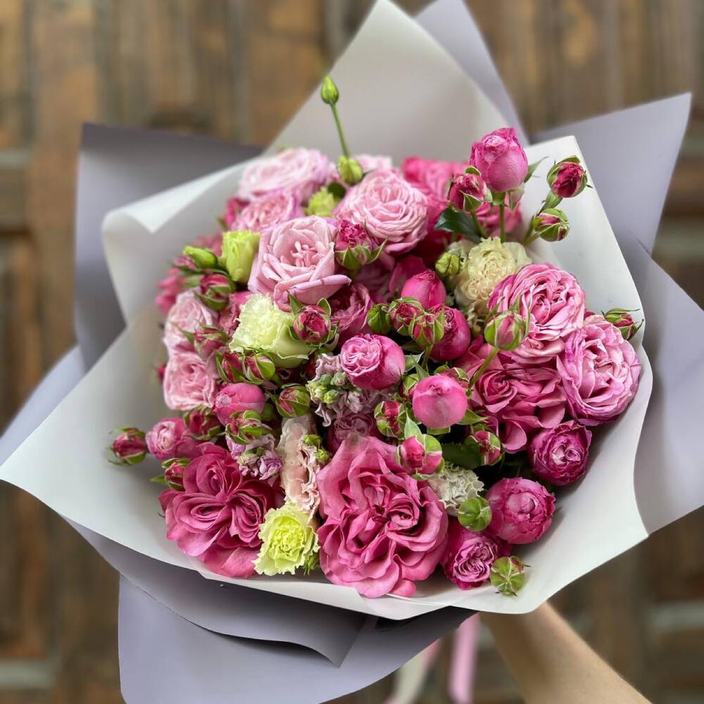 Гвоздики, Кустовые розы, Лизиантусы, Пионовидные розы, Розы