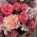 Гвоздика розовая – 3 шт.Статица – 2 шт.Роза кустовая пионовидная – 1 шт.Лимониум – 1 шт.Фисташка – 2 шт.Упаковка дизайнерская – 1 шт.