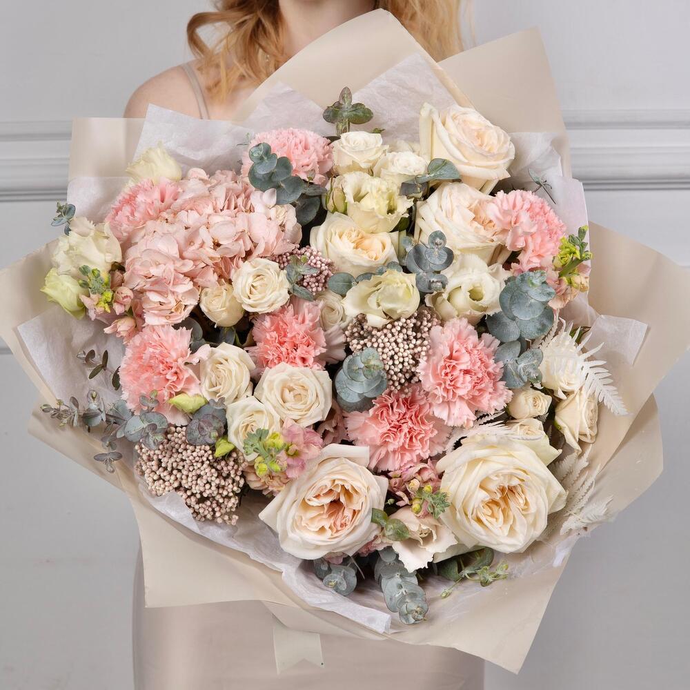 Категорий: Гвоздики, Гортензии, Кустовые розы, Лизиантусы, Пионовидные розы, Розы