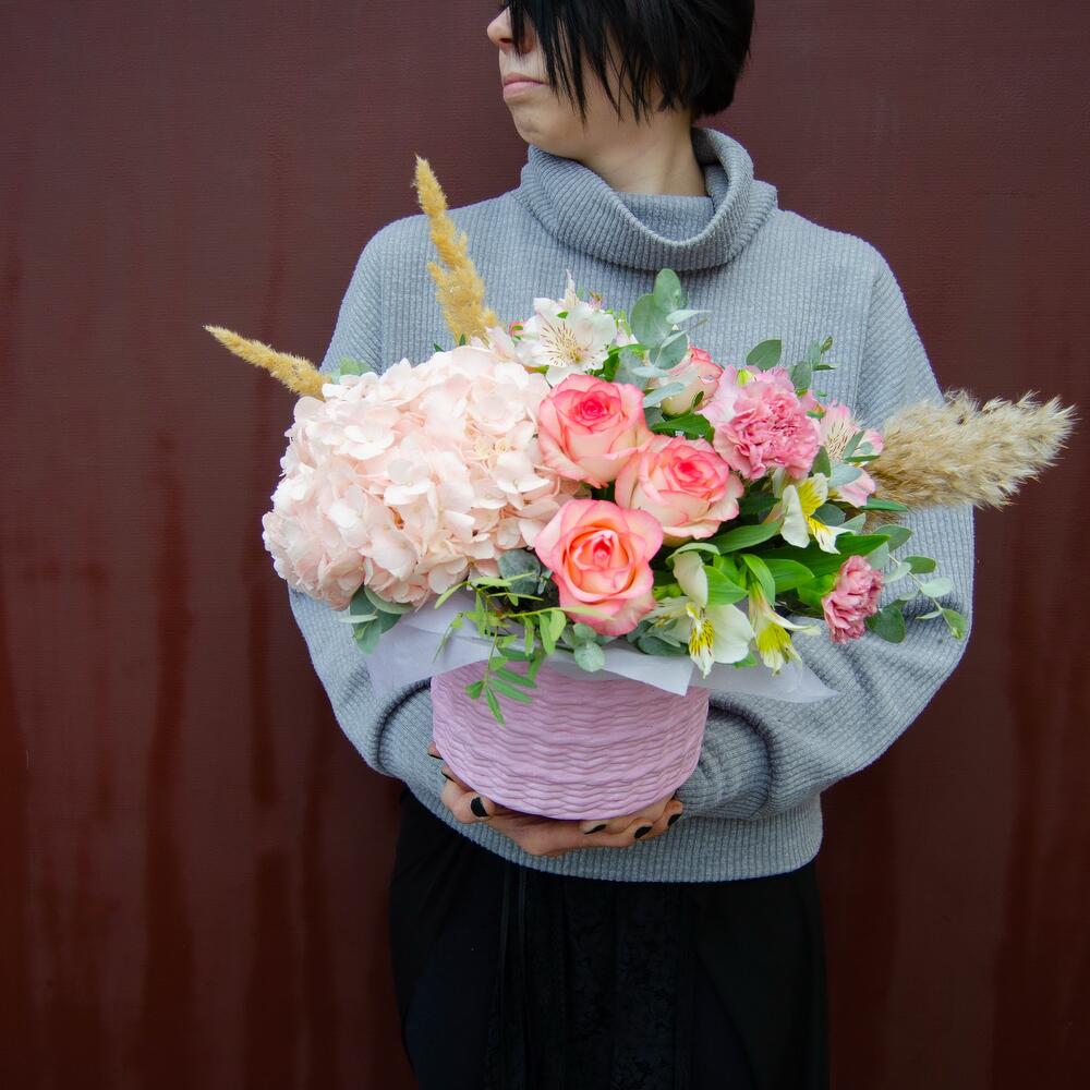 Категорий: Альстромерии, Гвоздики, Гортензии, Диантус, Розы, Эвкалипт