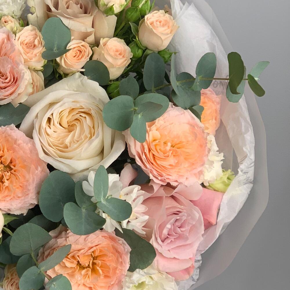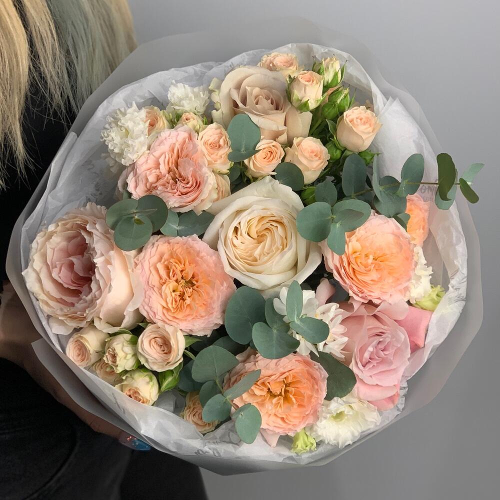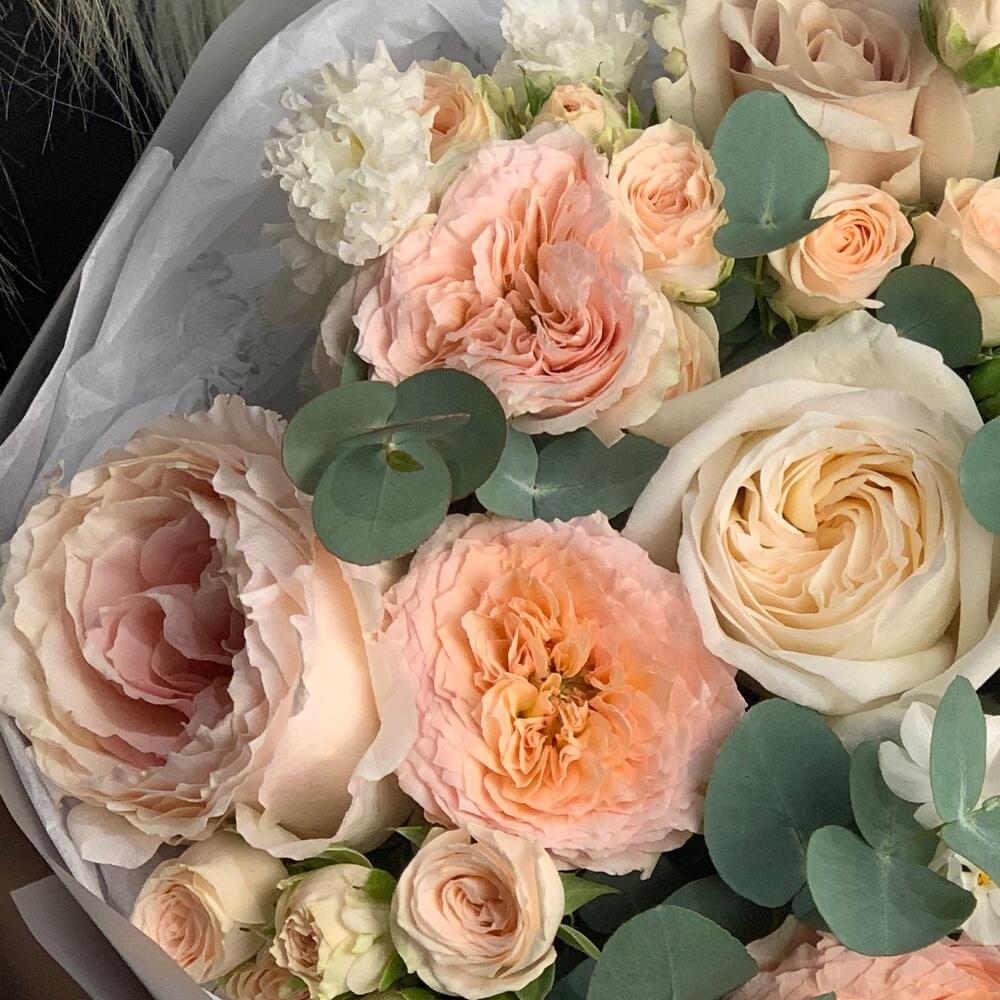 Гвоздики, Кустовые розы, Лизиантусы, Пионовидные розы, Розы
