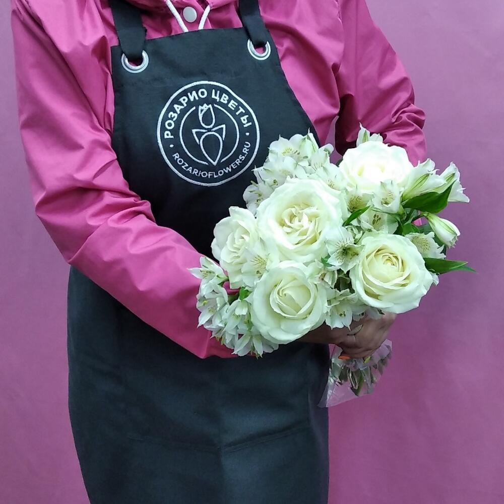 лента атласная (белый) – 1 шт.альстромерия (белый) – 7 шт.роза одноголовая белый – 5 шт.