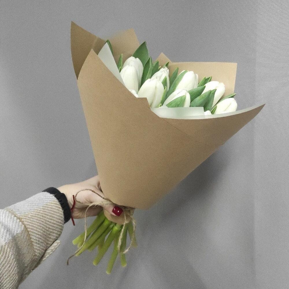 Тюльпан – 15 шт.крафтовая бумага – 1 шт.Лента атласная – 1 шт.