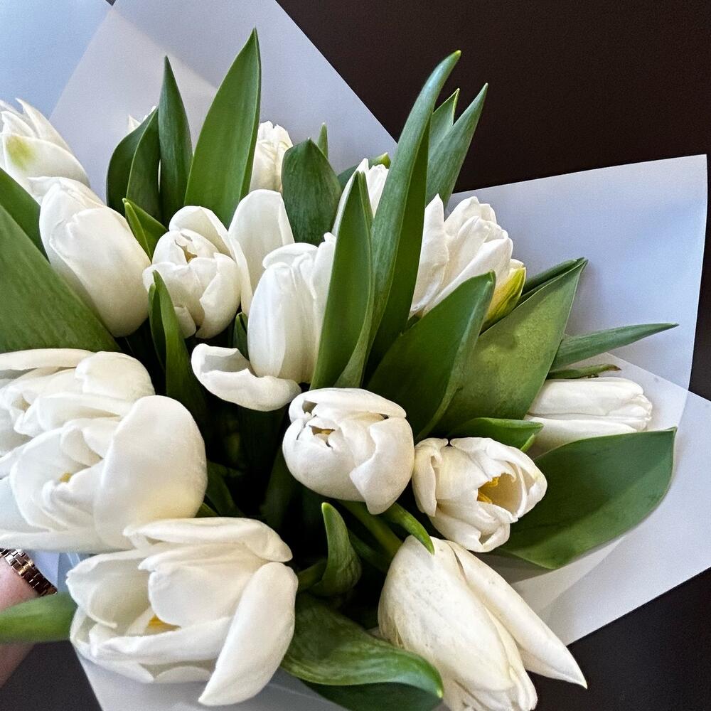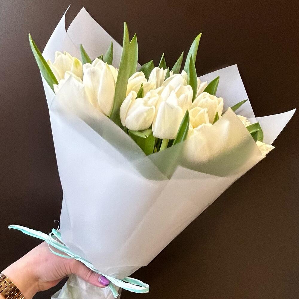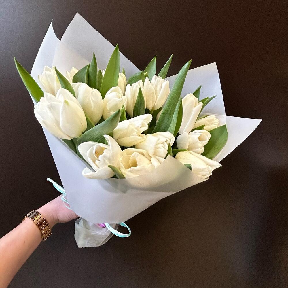 Тюльпан – 21 шт.Лента атласная – 1 шт.Упаковка дизайнерская – 2 шт.